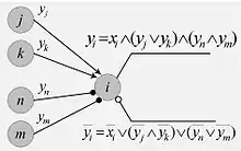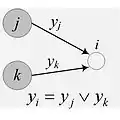 - логический оператор «ИЛИ» между множеством заходящих в одну вершину дизъюнктивных ребер.