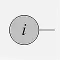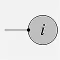 - Инверсный выход ребра из вершины, представляет собой условие не реализации выходной (интегративной) функции соответствующим элементом (логический оператор «НЕ»).