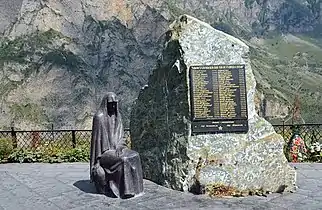 Также, на средства добровольных пожертвований, на месте бывшего лагеря «Надежда» в Кармадонском ущелье был установлен памятник «Скорбящая мать». Это медная скульптура скорбящей матери, ждущей своего ребёнка, рядом с которой расположена 25-тонная каменная глыба принесённая ледником, на которую поместили гранитную плиту с именами тех, кого так и не удалось найти в районе Кармадонского тоннеля[34].