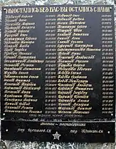 В различных источниках списки пострадавших разнятся, на мемориальной плите указаны имена 54 пропавших без вести, однако в действительности от схода ледника Колка погибло 125 человек[30].