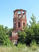 Возле церкви сохранились остатки старого церковного кладбища, на котором был похоронен участник Наполеоновских войн генерал-майор Лука Алексеевич Денисьев[6].