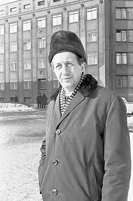 ![]() Э. Сыгель в Таллине, угол проспекта Эстония/улицы Сакала. 1968 | |