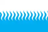 Описание флага гласило: «Прямоугольное полотнище с отношением ширины к длине 2:3, пламевидно разделённое по горизонтали на равные белую и синюю полосы».