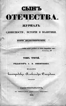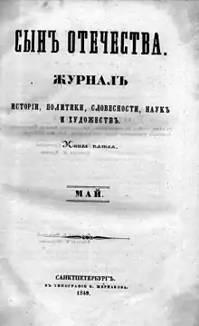 «Сын оте́чества» — русский исторический, литературный и общественно-политический журнал XIX века; выходил в Санкт-Петербурге с 1812 года до 1852 года (с перерывами) и оказал влияние на развитие общественной мысли и движение литературной жизни в России. С тем же названием выходил журнал с 1856 года по 1861 год и газета с 1862 года по 1901 год.