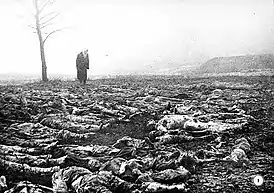 ![]() Трупы, вырытые на территории Сырецкого концлагеря. 1943 г. | |
