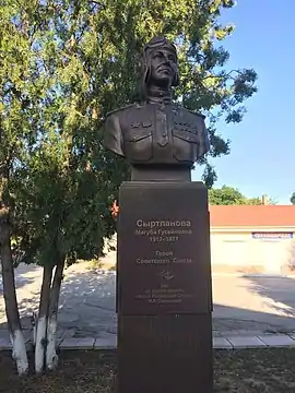 9 сентября 2017 года рядом средний школы № 2 был открыт памятник Магубе Гусейновне Сыртлановой.