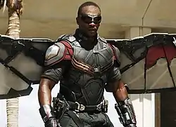 ![]() Энтони Маки в роли Сэма Уилсона / Капитана Америки в мини-сериале «Сокол и Зимний солдат» (2021) | |