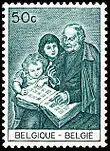 На бельгийской почтовой марке, посвящённой популяризации юношеской филателии, изображён фрагмент настенной росписи брюссельского почтамта, выполненной Ж. Э. ван ден Бюше, где «отец почтовой марки» Роуленд Хилл (см. «Чёрный пенни»), показывая детям свой марочный альбом, берёт марку пальцами, чего делать нельзя. Кроме того, в его альбоме марки расклеены на соседних страницах и неизбежно будут испорчены от соприкосновения друг с другом, в то время оборотные страницы альбомов оставляли чистыми (современный двусторонний альбом для марок с прозрачными кармашками получил распространение позднее).