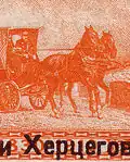 В юбилейной серии марок Боснии и Герцеговины, которую тогдашние австро-венгерские власти этой аннексированной территории посвятили 80-летию императора Франца-Иосифа, на марке номиналом в 40 геллеров с изображением почтового дилижанса-двуколки на двух запряжённых в него лошадей приходится всего шесть, максимум семь ног.
