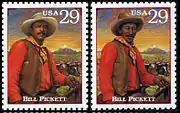В сцепке почтовых марок «Легенды Запада» за несколько дней перед её официальным выпуском потомки семьи знаменитого ковбоя Билла Пикетта заметили, что изображённое на соответствующей марке лицо не Билл, а его кузен Бен Пикетт, и выставили почте США претензии, потребовав изъятия брака и переиздания выпуска с исправленным портретом. Почта приняла претензии, однако приблизительно сто серий с ошибкой уже поступили в почтовые отделения. Поэтому, чтобы сбить ажиотаж, была устроена своеобразная лотерея: удовлетворялись 150 тысяч выбранных случайным образом предварительно оплаченных заявок коллекционеров о покупке серии с ошибкой. Остальным желающим оплата возвращалась. Филателистическая пресса, недовольная таким решением, подняла скандал. Однако в итоге первоначальная стоимость миниатюры с ошибкой опустилась с 300 до 150 долларов США, несмотря на прогнозы, что цена поднимется выше пятисот долларов.