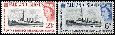 В серии почтовых марок, выпущенной к полувековой годовщине битвы за Фолкленды (1914), на 6-пенсовой марке ошибочно изображено судно HMS Glasgow с марки номиналом в 2½ пенса из той же серии. На его месте должен быть HMS Kent. Тираж марки был немедленно допечатан с правильным военным кораблём, однако, по предположениям почты Великобритании, в продажу всё-таки успел попасть один лист из 60 марок с ошибкой. Он был куплен неназванным марочным дилером из США, не заметившим ошибки. До настоящего времени выявлено 17 экземпляров. Каталог «Скотт» в 2003 году оценивал шестипенсовый «Глазго» в 15 000 долларов США. В 2004 году один из них был продан за £24,000, в 2005 году другой оценивался в SF29 000. Нормальный экземпляр с изображением HMS Kent при этом идёт по US$1,10.