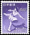 Вздымающаяся юбка фигуристки на льду демонстрирует, что она выполняет изящную левую обратную спираль. Однако оставленный ею след однозначно показывает, что она при этом одновременно совершает движение вперёд. Серия марок Японии посвящена 4-м национальным атлетическим соревнованиям, марка 5 иен репрезентует фигурное катание в японском городе Сува.