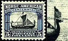Была выпущена двухмарочная серия, отмечавшая столетие прибытия в Америку первых поселенцев из Норвегии. На марке в 2 цента изображён корабль, доставивший переселенцев в 1725 году, а на второй, номиналом в 5 центов, — точная копия гокстадского дракара, древнего корабля викингов, к носу и корме которого в знак американо-норвежской дружбы приделаны государственные флаги Норвегии и США. Эта копия корабля была спущена на воду в Христиании (Осло) и приплыла в Чикаго в 1893 году на Всемирную выставку, посвящённую 400-летию открытия Америки Колумбом[1].