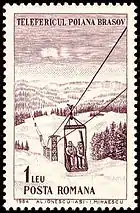 На марке Румынии, посвящённой лыжному отдыху на высокогорной базе Пояна-Брашов, изображён подъёмник, где в открытой одноместной кабине находятся сразу два лыжника, причём оба без каких-либо страховочных приспособлений.