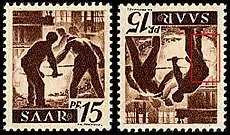 В стандартной серии Саарской области сюжет марок номиналами в 15, 16, 20 и 24 пфеннига представлял собой двух металлургов в процессе выплавки у мартена. Но если перевернуть одну из перечисленных марок и приглядеться, то позади второго рабочего можно обнаружить лицо одноглазого Адольфа Гитлера. Что хотел этим сказать художник и хотел ли вообще, неизвестно. Но каталожная цена такой марки более чем вшестеро превосходит соседние марки той же серии.