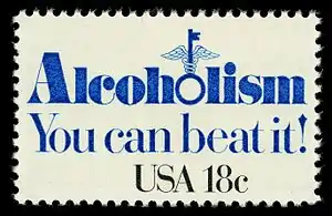 В августе 1981 года в рамках общенациональной антиалкогольной кампании массовым тиражом была выпущена почтовая марка, дизайн которой представлял собой её слоган — «Алкоголизм. Ты можешь его побороть!» (англ. Alcoholism. You can beat it!). Но вскоре после выпуска выяснилось, что население избегает её покупать: благодаря неочевидной сюжетной ошибке маркой фактически невозможно пользоваться по прямому назначению, так как на конверте она выглядит как оскорбление адресата, недвусмысленно обвиняя его в неумеренном употреблении спиртного. Почтовая служба США спустя несколько месяцев была вынуждена уничтожить остаток тиража, понеся ощутимые убытки.