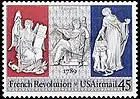 На авиапочтовой марке, посвящённой двухсотлетию Великой французской революции, аллегорически изображающей её девиз «Свобода, равенство, братство», цвета республиканского французского флага даны в обратном порядке. Хотя, возможно, это и не ошибка, так как в тот период порядок цветов не был жёстко регламентирован (это было сделано лишь Наполеоном Бонапартом).