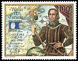На 100-франковой авиапочтовой марке Уоллис и Футуна, посвящённой Всемирной выставке почтовых марок по колумбовой тематике в Чикаго, изображён Христофор Колумб — и снова с подзорной трубой и глобусом. Подзорная труба была изобретена более чем век спустя.