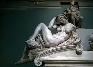 - Первая часть диалога — знаменитая эпиграмма поэта Джованни Строцци (1504—1571), написанная им на скульптуру «Ночь» Микеланджело: