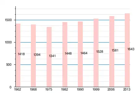 Население коммуны в 2011 году составляло 1611 человек[7], в 2012 году — 1634 человека[8], а в 2013-м — 1643 человека[6].