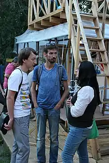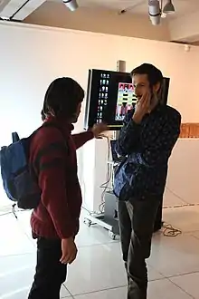 ![]() Андрей Сяйлев на фоне своей работы "Tetris", 2016 г. | |