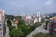 Университетский кампус. В центре - комплекс Цзягэн (Тан Каки), на переднем плане - общежития