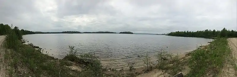 Озеро немного вытянуто с северо-запада на юго-восток. Берега каменисто-песчаные, местами заболоченные[1][7].