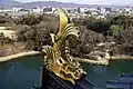 Золотое сятихоко (кинсяти) на крыше замка Нагоя.