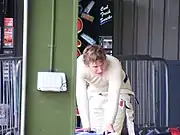 ![]() Сёртис выталкивает болид Формулы-Рено из закрытого парка на трассе Оултон Парк в 2008. | |