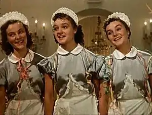 - 1956 — Карнавальная ночь — буфетчицы Вера, Надя и Люба, исполняющие песню «Таня»