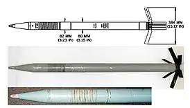 | Обозначение | Изображение | Тип БЧ | Дальность пуска, м | Скорость полёта, м/с[5] | Диаметр, мм | Длина, мм[5] | Масса, кг[5] | Масса БЧ/ВВ, кг[5] | Взрыватель | Примечания | |||