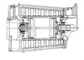 Двигатель имел воздухозаборник — входной диффузор, окружённый масляным баком, в котором масло охлаждалось потоком воздуха. Внутри кока устанавливался воздушный стартер. Осевой восьмиступенчатый компрессор обеспечивал повышение давления воздуха в 3,16 раза. В кольцевую камеру сгорания топливо подавалось через центробежные форсунки. В процессе сгорания температура газа не превышала 1050 К, что позволило исключить применение внутреннего охлаждения лопаток. Двигатель развивал тягу 1360 кгс при удельном расходе топлива 1,3 кг/кгс*ч.