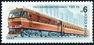 Тепловоз ТЭП75 является опытным пассажирским односекционным локомотивом, спроектированным по техническому заданию МПС СССР и построенным в 1976 году в количестве двух единиц, конструкция механической части и ряда оборудования которого перешла на тепловозы ТЭП70 серийного исполнения (с № 0008)[1]. От последних отличается применением в полтора раза более мощной силовой установки — двадцатицилиндрового дизеля 1Д49 мощностью 4413 кВт (6000 л.с). Тепловоз ТЭП75 был призван заменить в эксплуатации эквивалентные по мощности двухсекционные тепловозы 2ТЭП60 и предназначался для скоростного вождения длинных пассажирских составов, где мощности одного ТЭП70 было бы недостаточно и в то же время не требовался большой сцепной вес для преодоления уклонов[18].