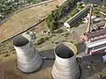 ![]() Электростанция Атлон. Усилительные обручи на правой башне разрушились, из-за чего обе башни были снесены 22 августа 2010. | |