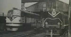 ![]() Газогенераторные тепловозы ТЭ1Г-20-096 и ТЭ1Г-20-127 на испытаниях в КНР (1959 год) | |