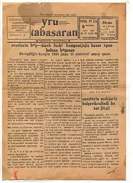 ![]() «Красный Табасаран» 1934 г. на латинице | |