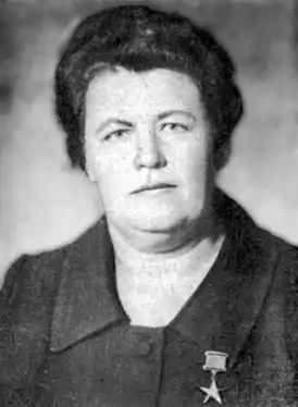 Работала председателем колхоза «Коминтерн» в станице Ново-Щедринская Шелковского района.