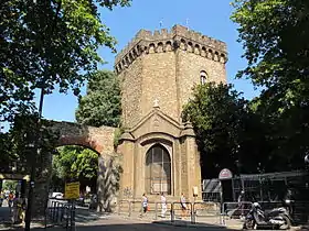 Здесь древняя стена Святого Фредиана, возведённая в XIV веке, прерывается и далее стена продолжается вдоль реки Арно. Башня расположена в стратегически важном углу. По это причине её также называли Сторожевой башней, и ещё Смрадной башней из-за мусора и трупов животных на близлежащей свалке за городской стеной.