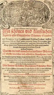 - D. Jacobi Theodori Tabernaemontani Neuw, vnd volkommenlich Kreuterbuch. — Franckfurt am Mayn, 1613, 1625, 1664, Basel: 1687, 1731. — № 1—3.[комм 4]