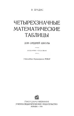 | Четырёхзначные математические таблицы | |