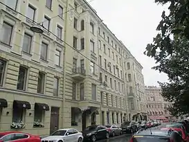 7831712000 — 1903—1904, архитектор М. Н. Кондратьев. Угол здания отмечен круглым выступом, увенчанным куполообразной башней, с 1905 по 1913 год здесь жил поэт и философ В. И. Иванов, в квартире которого на последнем этаже («на башне Иванова») собирались поэты и художники («Ивановские среды»). С 1906 по 1908 год под квартирой Иванова находилась художественная школа Е. Н. Званцевой[2].