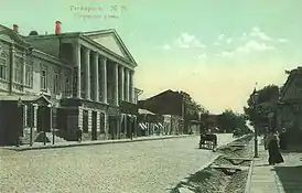 В 1932 года в здании работала парикмахерская с пятью мастерами. Первый этаж правого крыла здания занимал магазин «ТэЖэ» (только для Женщин). В годы Великой Отечественной войны здание было частично разрушено, после восстановления в нём размещался пищевой техникум, а с 1955 года — педагогический институт.