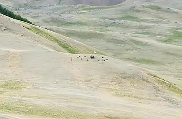 В таком контексте тагыл — это не только совокупность алтарей, но вся гора целиком, всё то место на котором располагается святилище. Объединяющем фактором различных по конструкции святилищ, как правило является шест, с флагом (мааны) воткнутый в центральный тагыл. В северной части, всегда установлена коновязь (чакы)[10].