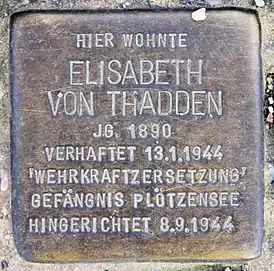 Елизавета фон Тадден (нем. Elisabeth Adelheid Hildegard von Thadden; 29 июля 1890[1][2], Моронг, Варминско-Мазурское воеводство — 8 сентября 1944[1][2], Плётцензее) — немецкая учительница, участница движения Сопротивления. Осуждена и казнена за «пораженчество». Сводный брат Адольф фон Тадден.