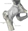 | Кровоснабжение | медиальная и латеральная артерии, огибающие бедренную кость (из глубокой артерии бедра), запирательная артерия. |