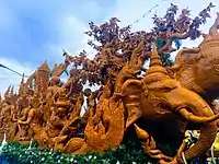 Ядро тайского фольклора исходит из этнической религии. Долгое время народные верования передавались от одного поколения к другому устно. В тайском фольклоре встречается множество духов: Мае Нак (แม่นาก), Преты (เปรต)[68], Нанг Тани (นางตานี)[69]. Народные сказки и легенды Таиланда использовались старейшинами для воспитания подрастающего поколения. Многие из сказок содержат моральные и нравственные уроки, прививающие уважение к старшим, родителям и начальству. Сказания о духовном мире учат детей быть осторожными, оставаться дома ночью, уважать местные обычаи и ритуалы. Многие тайские народные сказки основаны на буддизских текстах[70].