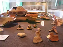 Некоторые из вырезанных семи включают небольшой столик или поднос, на который, как полагают, помещалась галлюциногенная смесь, так называемая кохоба, приготовляемая из бобов одного из видов дерева Анаденантера (Anadenanthera). Такие подносы были найдены вместе с украшенными орнаментом трубками для вдыхания через нос.