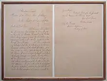 ![]() Письмо Авраама Линкольна от 14 ноября 1861 года, информирующее Токугаву Иэмоти об отъезде Таунсенда Харриса из Эдо. Иэмоти именуется «Его величеством тайкуном Японии» |