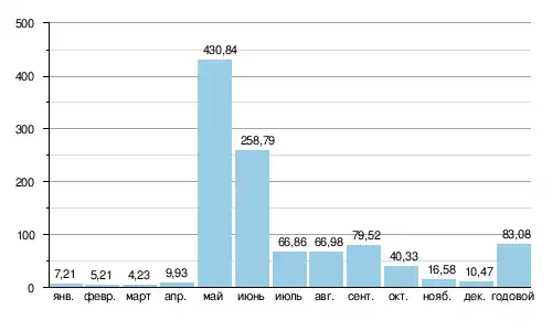 | Расход воды | 83,08 м³/с (332 км от устья) |