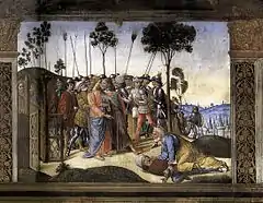 27 октября 1480 года Росселли, вместе с другими флорентийскими художниками, в том числе Доменико Гирландайо и Сандро Боттичелли, приехал в Рим, куда они были приглашены для участия в проекте по примирению между Лоренцо де Медичи, фактическим правителем Флорентийской республики и папой Сикстом IV. Весной 1481 года флорентийцы приступили к работе в Сикстинской капелле, вместе с Пьетро Перуджино, который начал работу ранее.